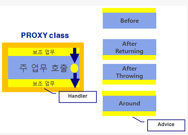 - 적용 예시 : <aop:after-throwing> @AfterThrowing